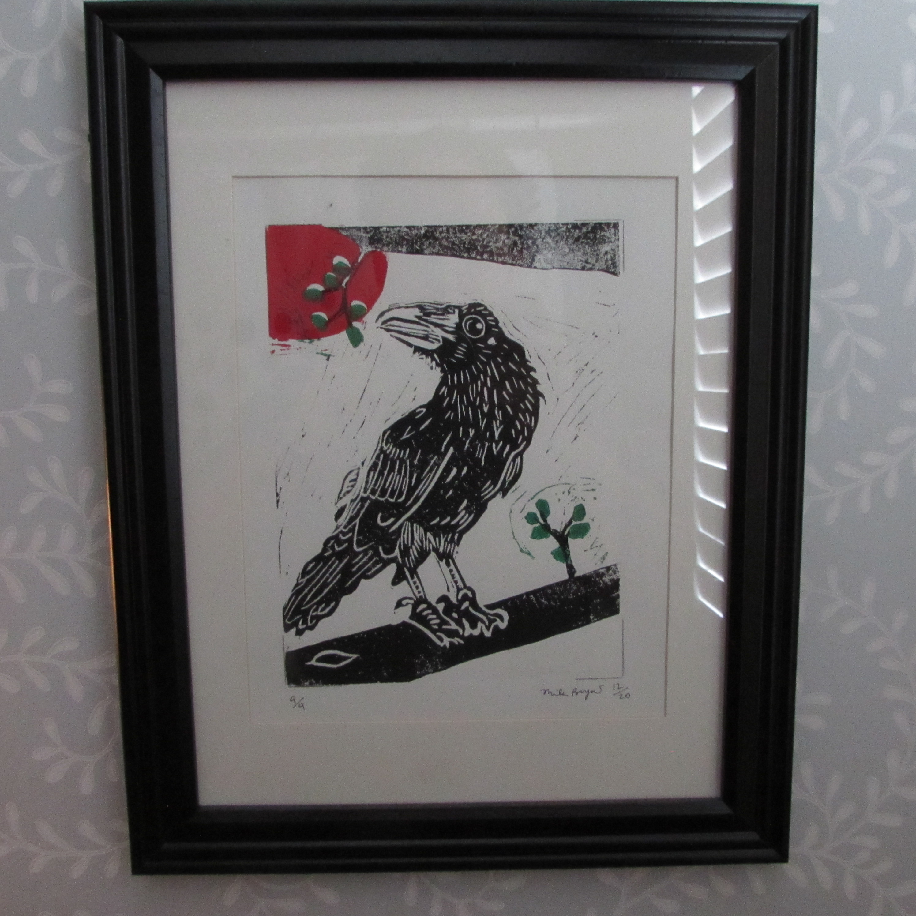 Black crow red sun print